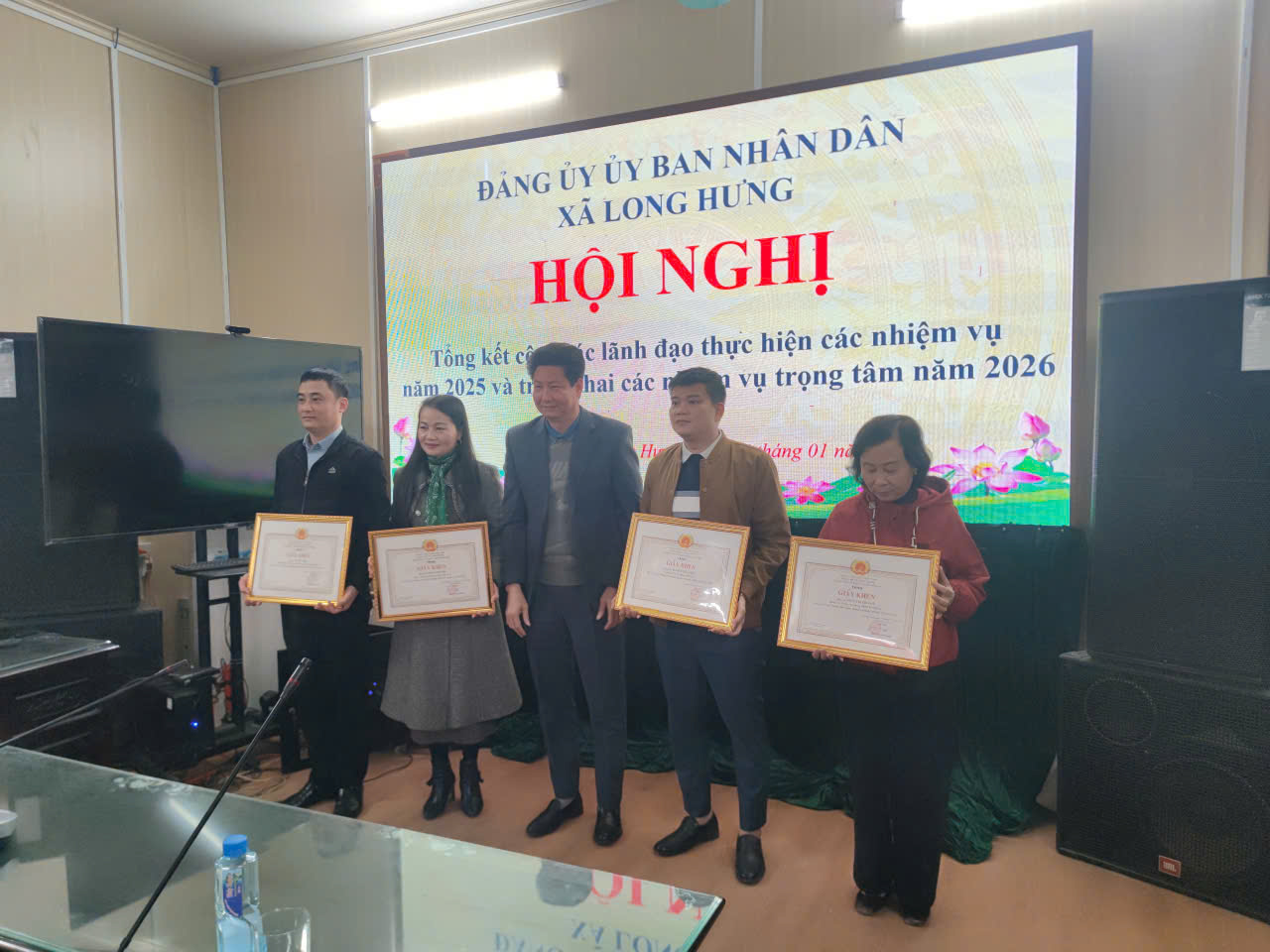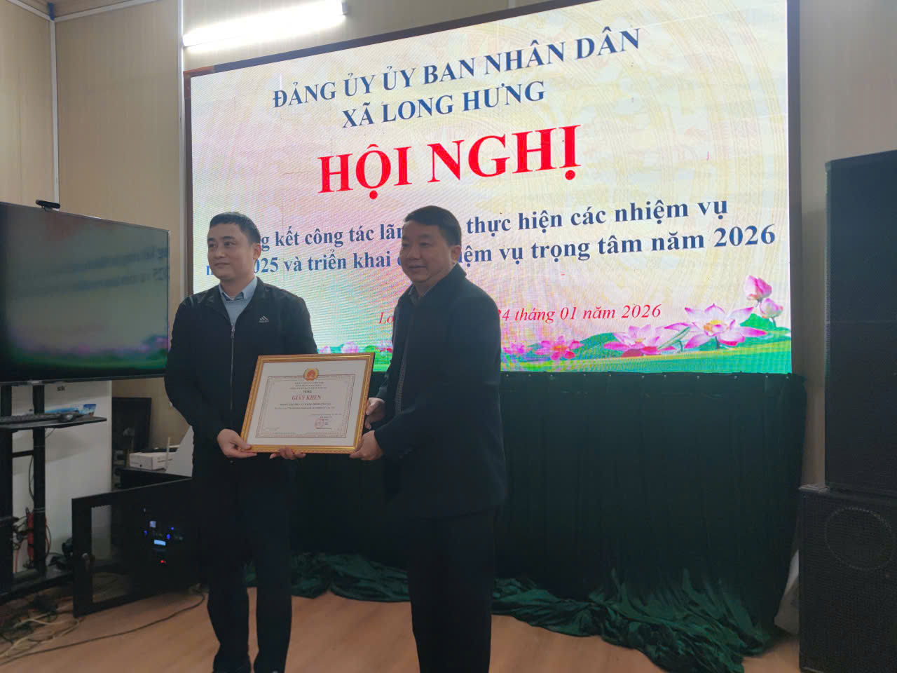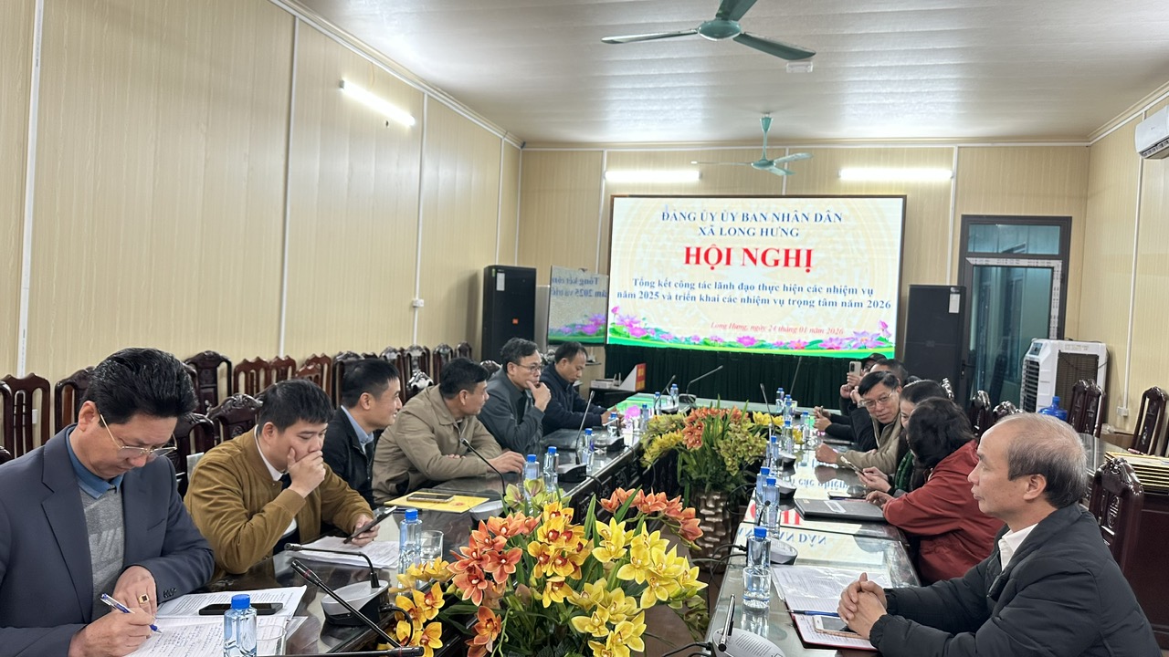 Sáng ngày 24/01/2026, Ban Thường vụ Đảng Uỷ UBND xã Long Hưng tổ chức Hội nghị tổng kết công tác lãnh đạo, chỉ đạo thực hiện nhiệm vụ chính trị năm 2025, triển khai phương hướng nhiệm vụ năm 2026 và tổ chức khen thưởng cho tập thể, cá nhân hoàn thành xuất sắc nhiệm vụ năm 2025.
