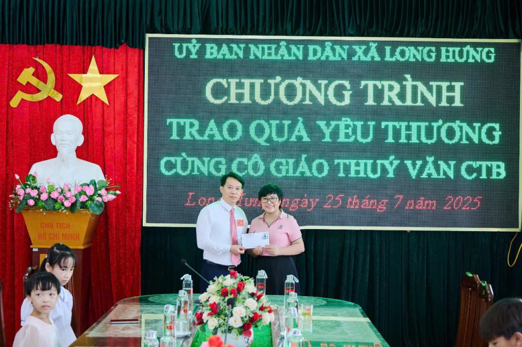 Ngày 25/7/2025, tại UBND xã Long Hưng, cô giáo Nguyễn Thị Thúy – giáo viên Ngữ văn Trường THPT Chuyên Thái Bình – đã phối hợp cùng Đảng ủy, UBND xã Long Hưng tổ chức chương trình “Trao quà yêu thương” dành tặng cho 13 em học sinh có hoàn cảnh đặc biệt khó khăn trên địa bàn xã.