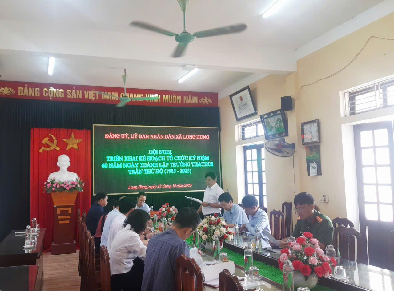 Sáng ngày 28/10/2025 Đảng uỷ, Uỷ ban nhân dân xã Long Hưng tổ chức hội nghị nghe trường THPT Hưng Nhân, trường TH và THCS Trần Thủ Độ báo cáo kế hoạch tổ chức kỷ niệm 60 năm ngày thành lập trường (1965 – 2025).