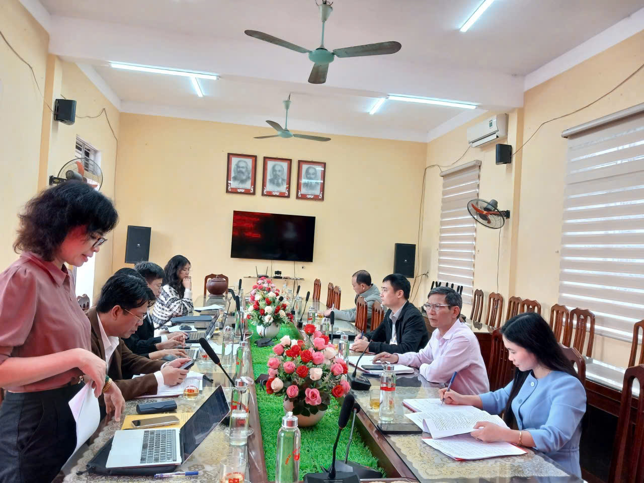 Đoàn khảo sát, nghiên cứu Học viện Chính trị quốc gia Hồ Chí Minh làm việc với Ban Thường vụ Đảng uỷ xã Long Hưng