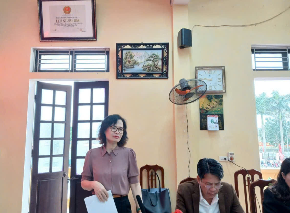 Tại buổi làm việc, đồng chí Vũ Thị Hương, Phó Bí thư thường trực Đảng uỷ xã đã báo cáo về đặc điểm tình hình của xã; những kết quả đạt được trong triển khai, vận hành mô hình chính quyền địa phương 2 cấp từ khi thành lập xã và đi vào hoạt động; những thuận lợi, khó khăn trong quá trình thực hiện mô hình chính quyền địa phương 2 cấp.