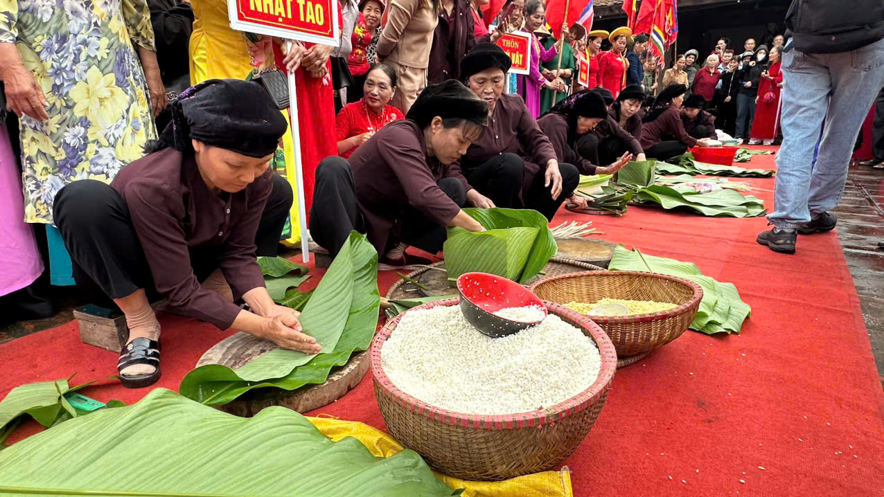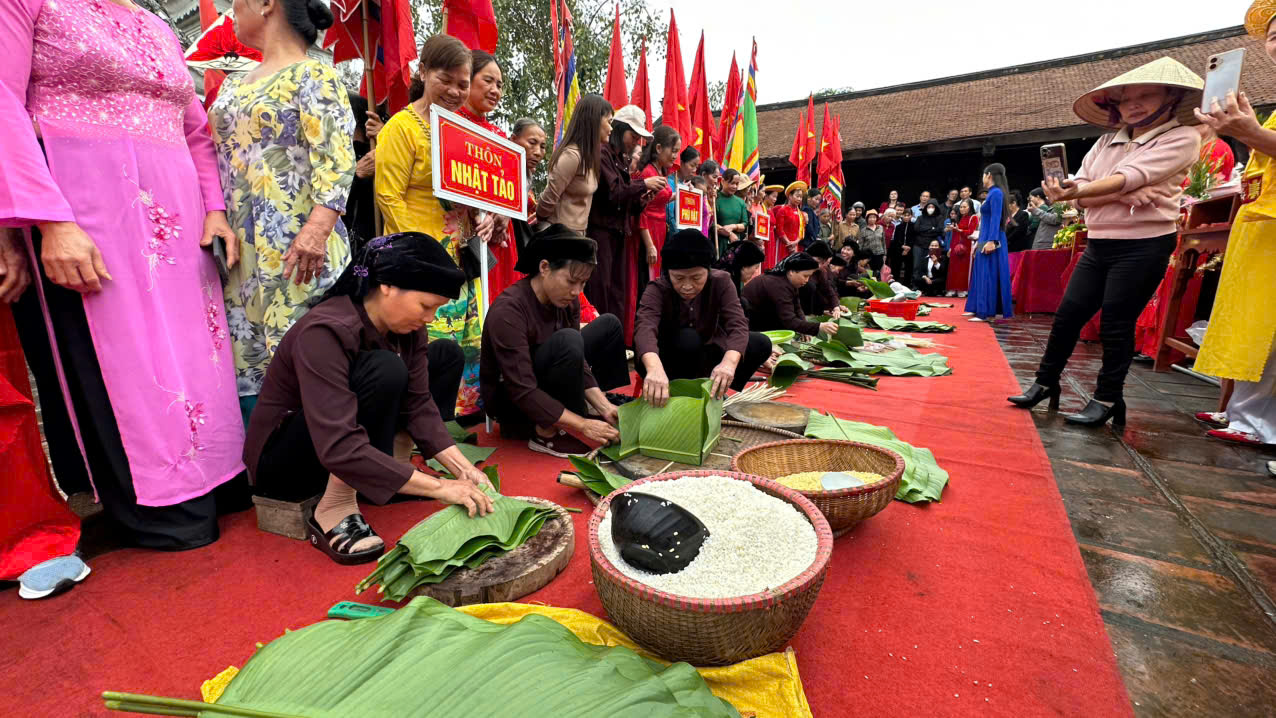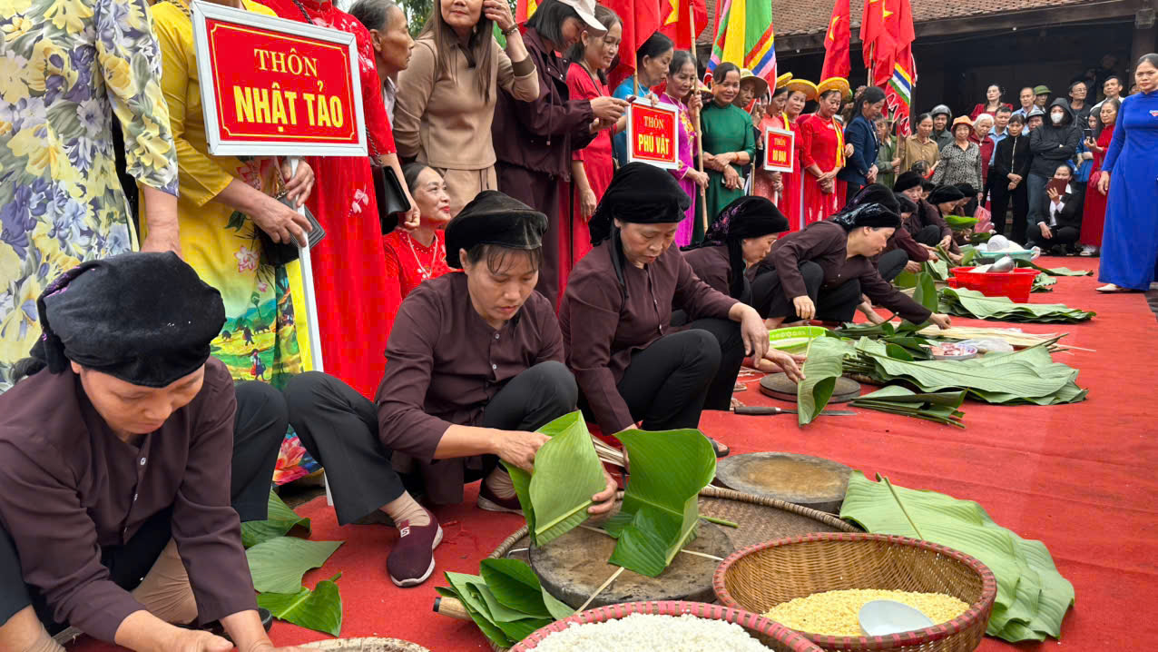 Hội thi gói bánh chưng là một hoạt động văn hóa đặc sắc, giàu ý nghĩa truyền thống của dân tộc, năm nay có sự góp mặt của 8 đội đến từ các thôn Trung Thượng, Dương Xá, Tây Nha, Tam Đường, Nhật Tảo, Phú Vật, Do Đạo, Đoan Bản. Bánh chưng – món bánh mang đậm hồn cốt dân tộc, gắn liền với truyền thuyết Lang Liêu thời Thời đại Hùng Vương – không chỉ là lễ vật dâng cúng tổ tiên mà còn là biểu tượng của đất trời, của lòng hiếu thảo và tinh thần đoàn kết. Qua bao thế hệ, chiếc bánh chưng xanh vẫn luôn hiện diện trong mỗi dịp Tết cổ truyền, trở thành nét đẹp văn hóa không thể thiếu của người Việt Nam.