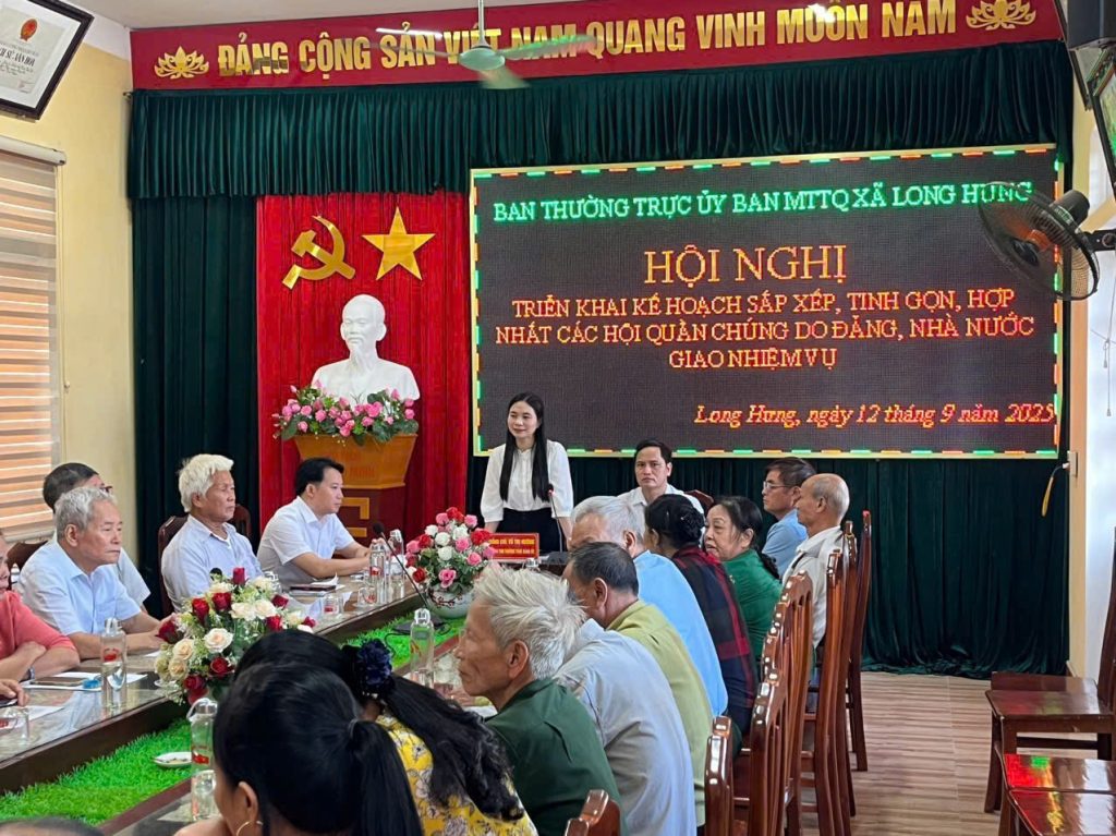 Ủy ban Mặt trận Tổ quốc xã Long Hưng triển khai Kế hoạch sắp xếp, tinh gọn, hợp nhất các Hội quần chúng do Đảng, Nhà nước giao nhiệm vụ, tháng 9/2025Ủy ban Mặt trận Tổ quốc xã Long Hưng triển khai Kế hoạch sắp xếp, tinh gọn, hợp nhất các Hội quần chúng do Đảng, Nhà nước giao nhiệm vụ, tháng 9/2025